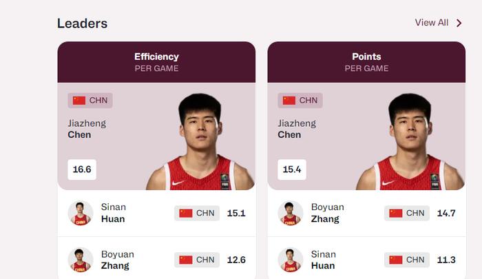在这样的大赛中,经历激烈的对抗,陈家政能够打出如此高效的表现着实令人感到惊喜。他成为了中国U19男篮的头号得分手,场均得分超过了得到14.7分的张博源。陈家政还是中国U19男篮的效率值之王,16.6的效率值超过了15.1的郇斯楠。